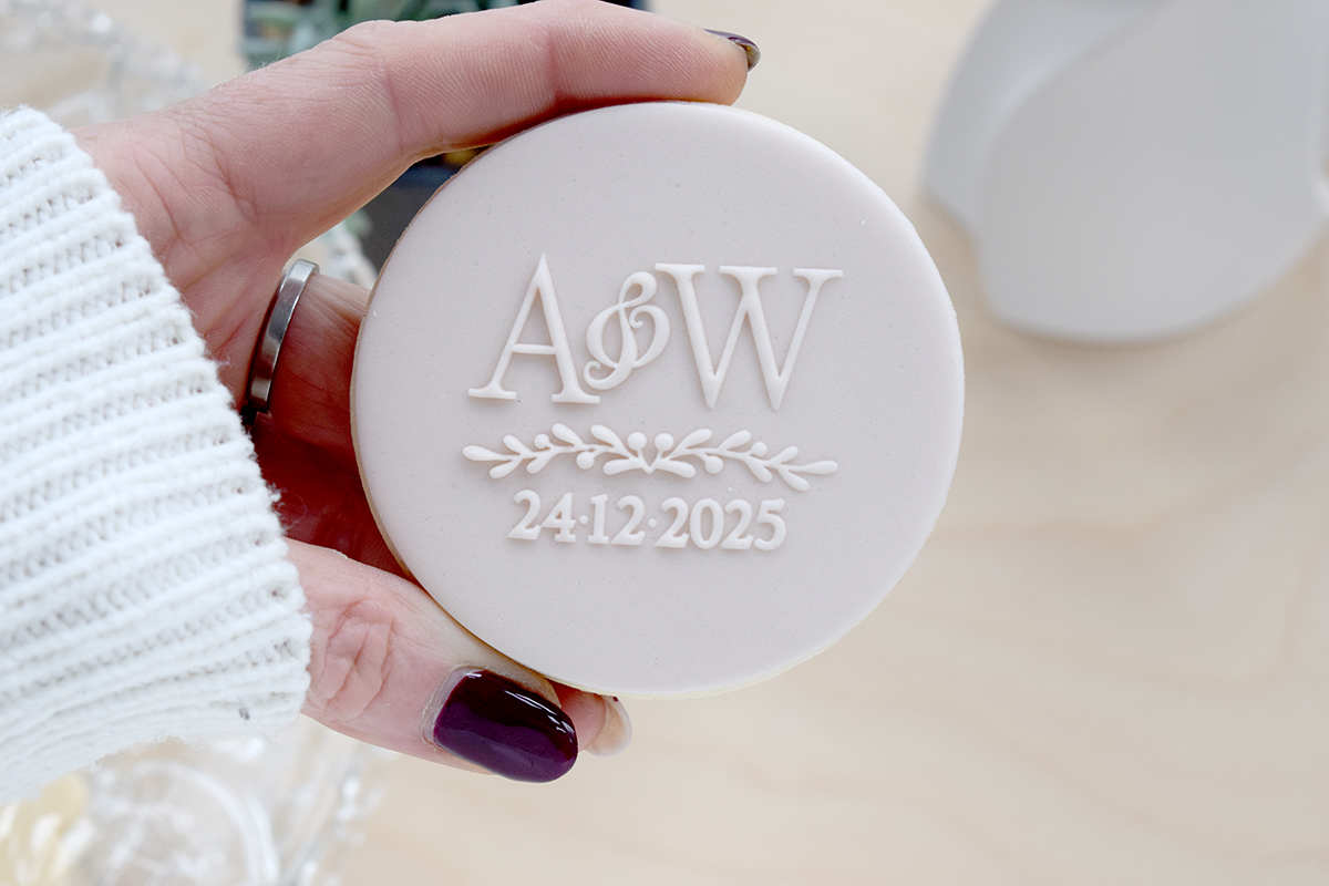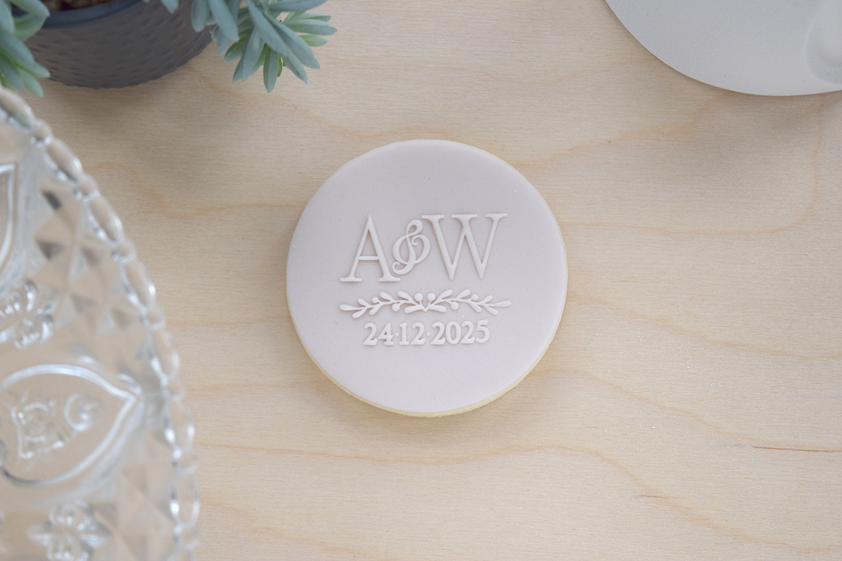 Gilded laurel flourish with Customisable Initials + Date embosser